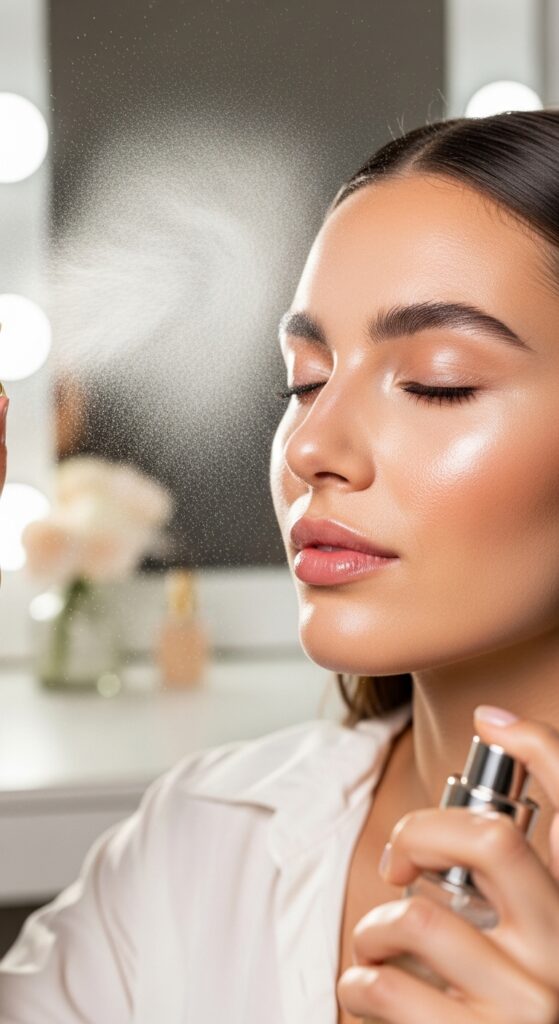 Lock in your makeup with a lightweight, dewy setting spray. This not only helps your makeup last longer but also adds an extra layer of glow. Hold the bottle a few inches from your face and mist evenly. Avoid heavy powders, as they can dull the natural finish.
