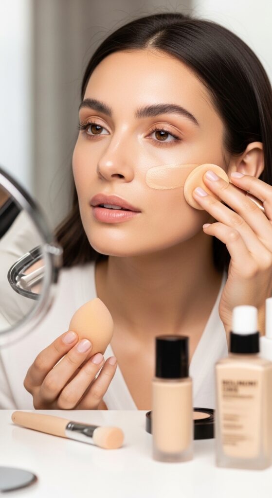 - Oily skin: Use oil-free, water-based formulas and lightly powder the T-zone.